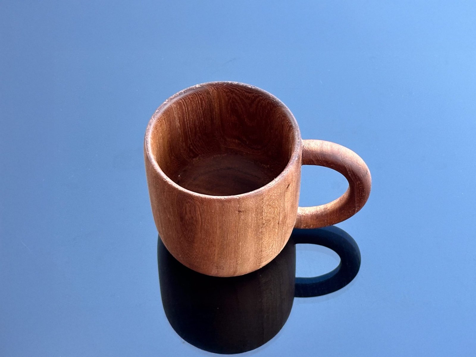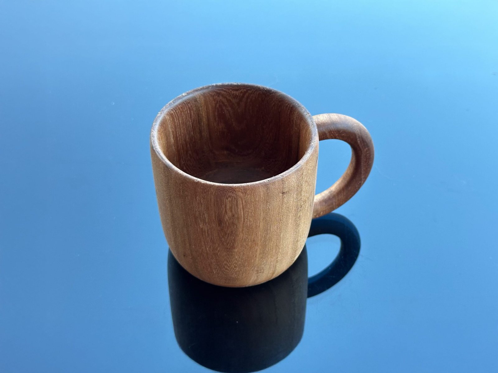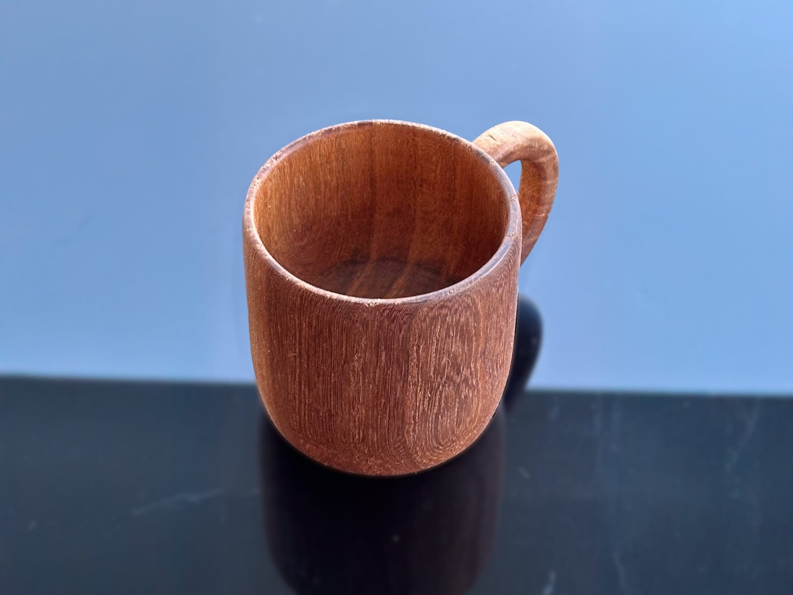 Beverage mug made of Elm tree wood. Finished with food grade linseed oil on top of the fine sandpaper for easy cleaning and protection from air, moisture and water. It will be enough to clean with a damp and slightly soapy cloth.